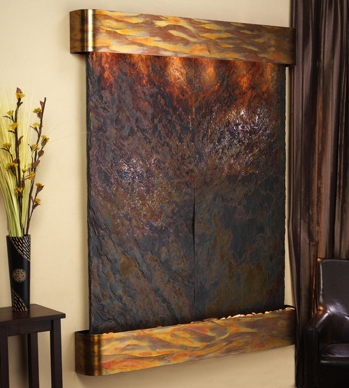 Majestic River Water Fountain, Multicolor Slate, Rustic Copper, Round Edges