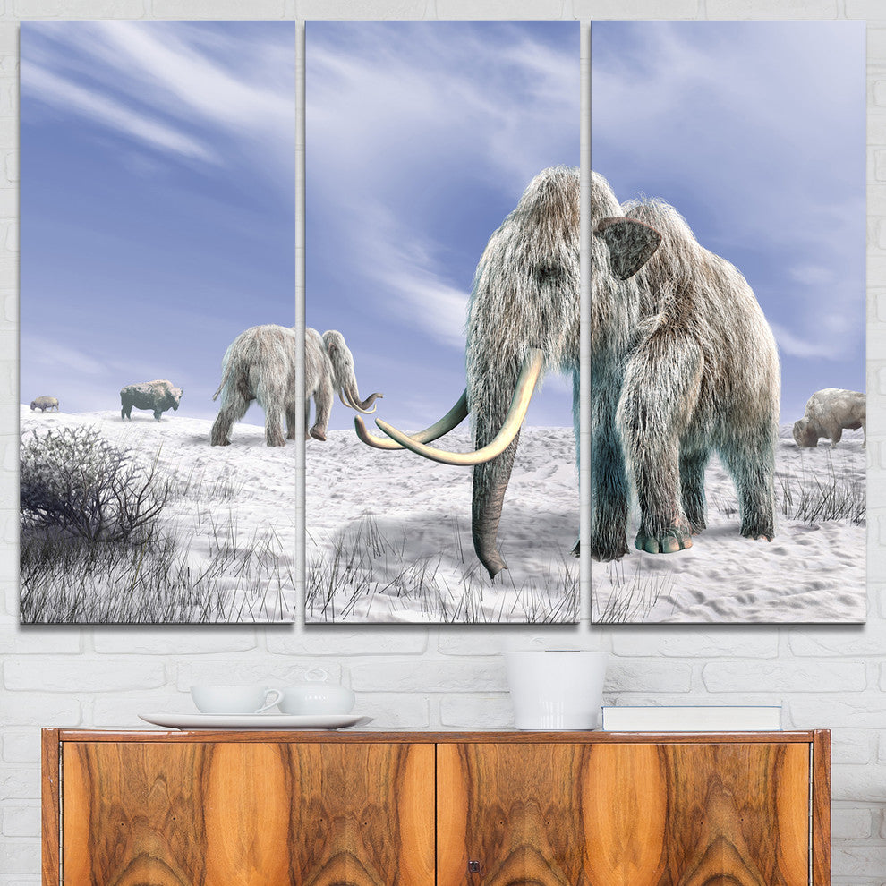 The Mammoth Elephants in Field canvas art print is sure to make an impression on anyone who sees it. This artwork is gallery wrapped around a 1-inch solid wood frame and arrives carefully packaged and entirely ready to hang on the wall. Design Art only uses the highest resolution and pigments to ensure a crisp colorful print that is never faded or pixelated. This artwork is sure to be a conversation starter in any home or office.