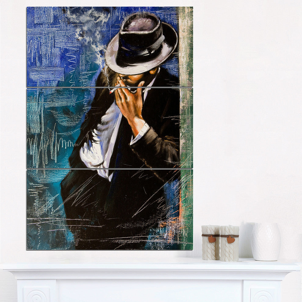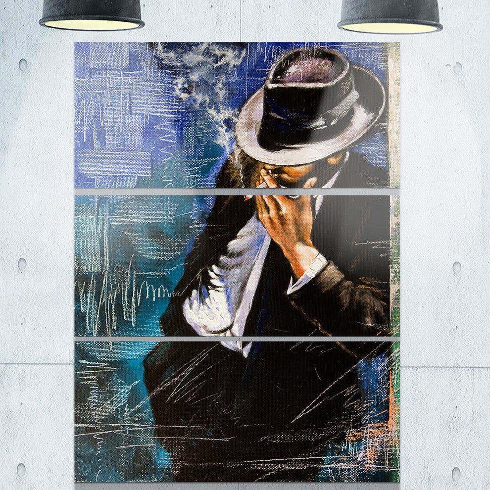 "Man With Cigarette" Glossy Metal Wall Art, 3 Panels, 28"x36"