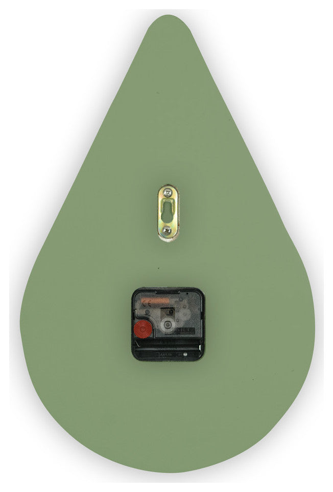 Item Specifications:.The quartz clock mechanism delivers precise and consistent timekeeping with complete silence. The non-ticking design eliminates noise, ensuring uninterrupted operation. This feature makes it suitable for areas requiring a quiet atmosphere, such as bedrooms, home offices, or libraries..The clock features a smooth, colored face made from durable medium-density fiberboard (MDF), ensuring strength and a clean finish. Its minimalist teardrop design integrates seamlessly into modern interiors, offering a simple and cohesive decorative element..The clock hands are made from lightweight, durable aluminum, ensuring reliable operation. The bold red triangular hour hand and dark gray oval minute hand create a geometric and distinctive appearance, providing a clear and accurate time display..The clock arrives fully assembled and does not require any additional setup. Its built-in keyhole slot allows for effortless hanging on various wall surfaces. This design ensures accurate time display immediately after installation, offering convenience and ease of use..The clock operates on a single AA battery, offering a practical and cord-free design. This battery-powered feature eliminates the need for nearby outlets or unsightly wiring, providing flexibility for placement on any wall in your home or office..The back of the clock features a built-in keyhole slot for secure wall mounting. This design allows for quick installation using a nail or wall hook, while its lightweight structure ensures stable placement without risk of slipping or damage..The clock"™s vibrant-colored face and bold geometric hands create a modern aesthetic. Its minimalist design seamlessly complements various spaces, including living rooms, kitchens, bedrooms, offices, or creative environments.Item Dimensions:Overall 15" H x 9" W x 1" DWeight: 2.4 lbs.Item Description:Clock in style with the LeisureMod Manchester Teardrop Wall Clock! Say goodbye to ticking distractions with its silent quartz movement, offering precise timekeeping in complete quiet. The smooth MDF teardrop face and geometric aluminum hands make it a standout piece in any room. Designed for easy setup, this clock requires no assembly and features a convenient keyhole slot for quick hanging. Powered by a single AA battery, it"™s perfect for spaces where cords are a hassle. Bring a bold, modern touch to your home, office, or living room with this sleek, functional timepiece.