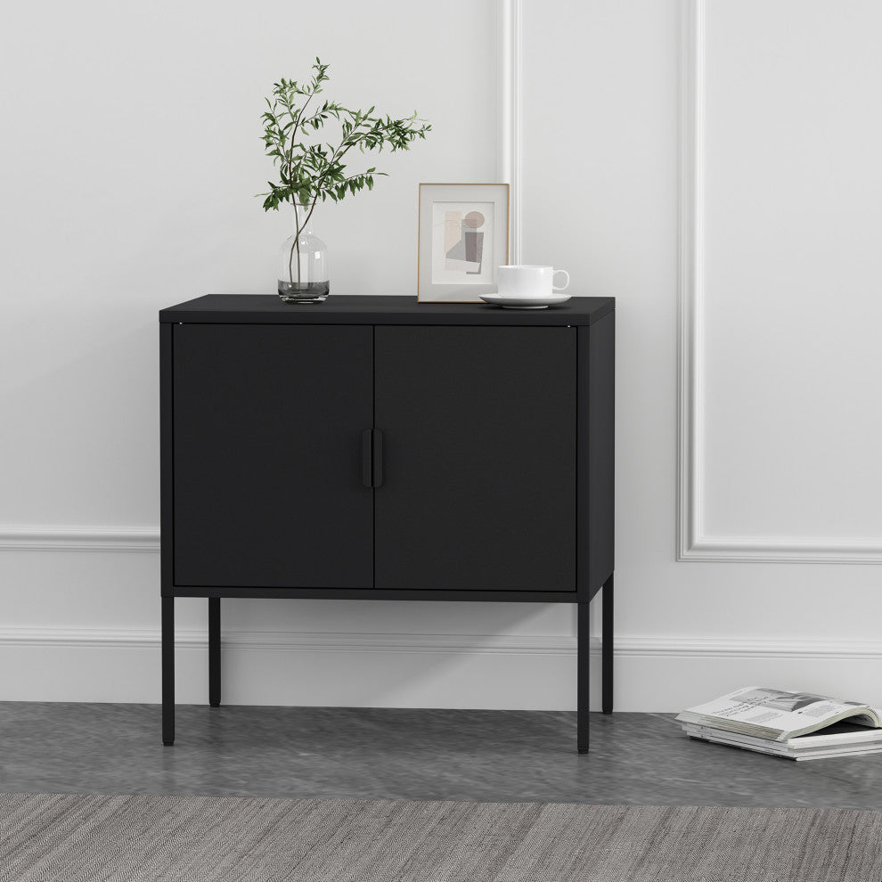 - Modern Metal Accent Cabinet Perfect for Storage and Organization.