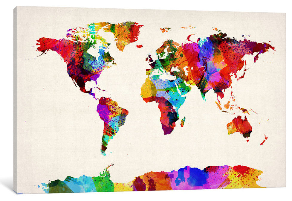 "Map Of The World, Abstract Painting II" Wrapped Canvas Print, 18x12x1.5