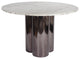 Our Martie 48" Dining Table offers a sleek marble top and a shiny sculptural base, making it so much more than just furniture"”it''s a conversation starter. Stylish, modern, and effortlessly cool, this table brings the wow factor to every meal!Features:48-inch round tabletop crafted with premium marble featuring unique veining for an elegant, timeless look.Cylindrical, polished stainless steel base with a smooth reflective finish for a modern luxe feel.Ideal size for 4-6 guests, offering a stylish centerpiece for dining rooms, kitchens, or open-concept spaces.Easy clean, durable surface.Luxe marble top adds chic surface space.Intriguing design combines style with function.