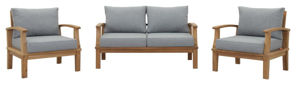 Marina 3 Piece Outdoor Patio Teak Set, Natural Gray