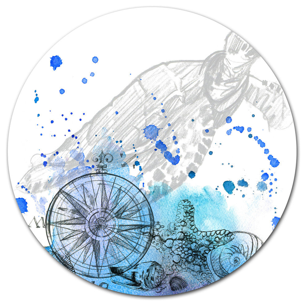 Bring Contemporary Abstraction to your home with this large Circle Metal wall art. This Marine Creatures Illustration Metal Artwork makes it the focal point of any room or office.