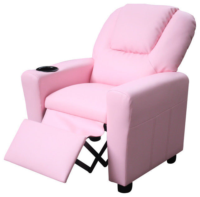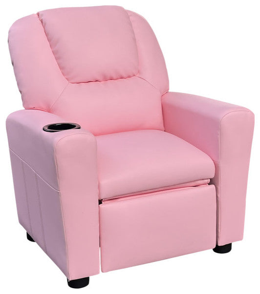 Marisa 23"W PU Leather Kids Recliner Chair with Cupholder, Pink