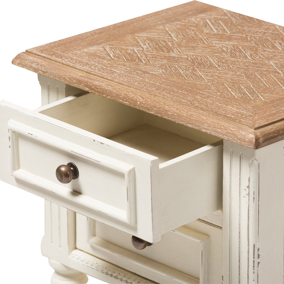 Marquetterie Weathered Oak and White Wash Distressed Finish Wood Nightstand