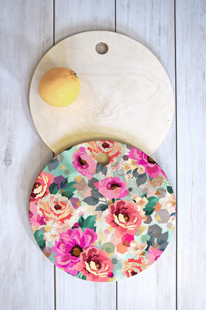 Marta Barragan Camarasa Abstract Geometrical Flowers Cutting Board, 11.5"x11.5"