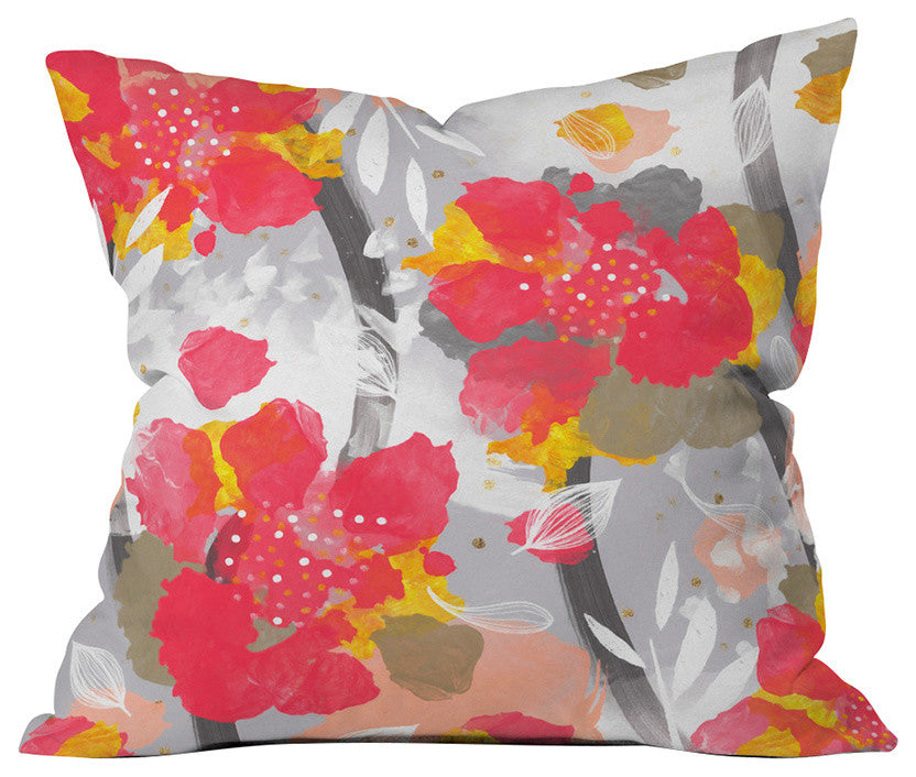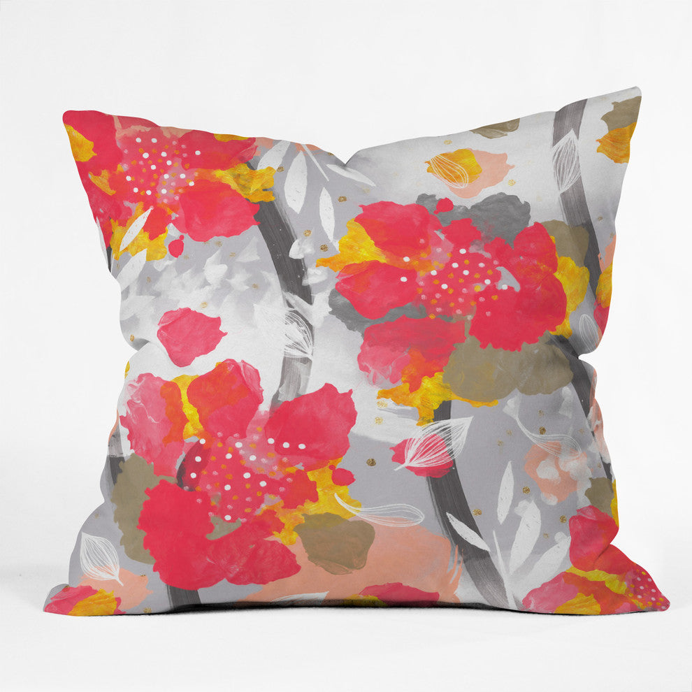 Marta Barragan Camarasa Paint Abstract Flowers Throw Pillow, 16"x16"
