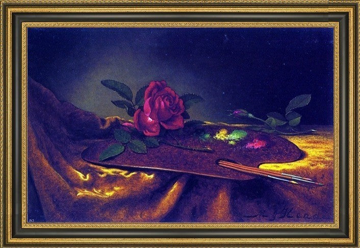 16" x 24" Martin Johnson Heade Roses on a Palette framed premium canvas print reproduced to meet museum quality standards. Our Museum quality canvas prints are produced using high-precision print technology for a more accurate reproduction printed on high quality canvas with fade-resistant, archival inks. Our progressive business model allows us to offer works of art to you at the best wholesale pricing, significantly less than art gallery prices, affordable to all. This artwork is hand stretched onto wooden stretcher bars, then mounted into our 3 3/4" wide gold finish frame with black panel by one of our expert framers. Our framed canvas print comes with hardware, ready to hang on your wall. We present a comprehensive collection of exceptional canvas art reproductions by Martin Johnson Heade.