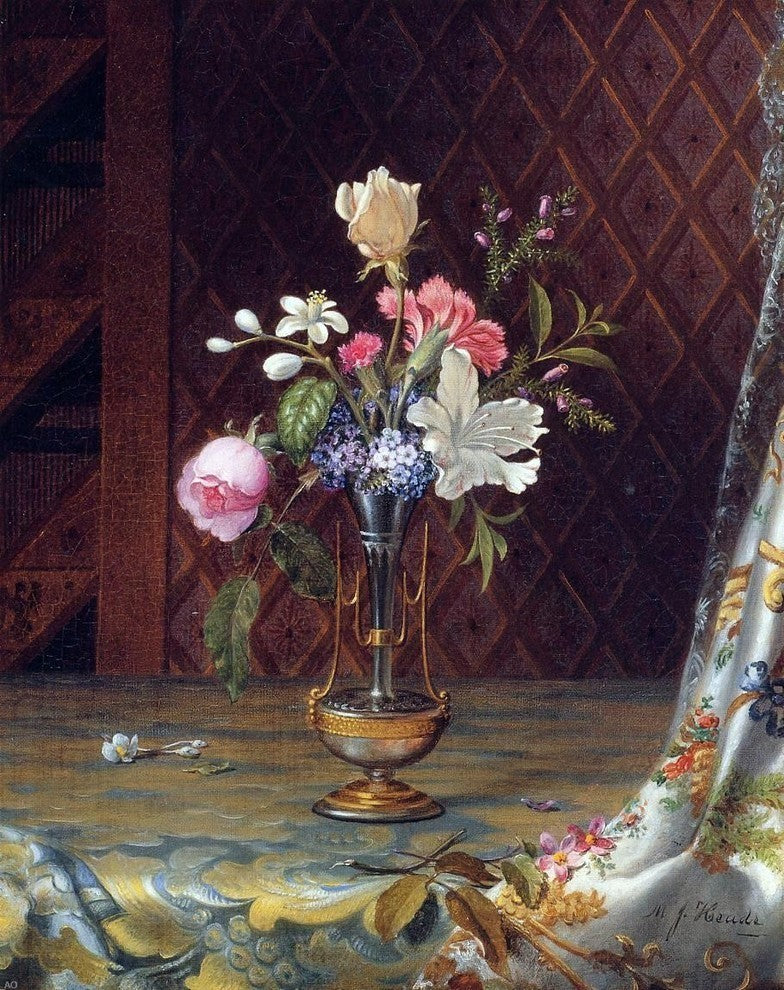Martin Johnson Heade Vase of Mixed Flowers Premium Canvas Print