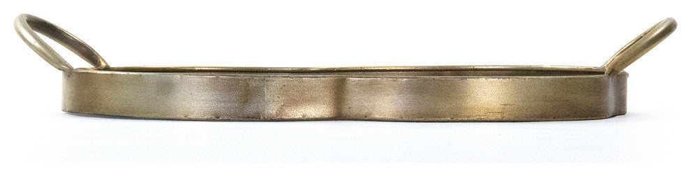 Both decorative and functional, the Maryanne Tray makes a simple and chic addition to contemporary decor. This peanut-shaped tray has a brass finish and curved handles for easy portability. Use it to serve drinks and appetizers at a party or set it on a coffee table to display vases and candles.