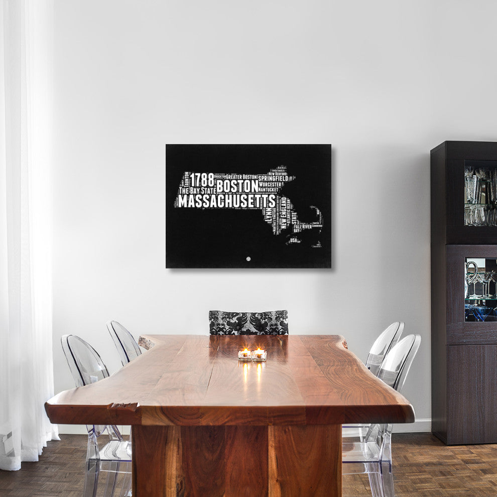 "Massachusetts Black and White Map" Fine Art Print