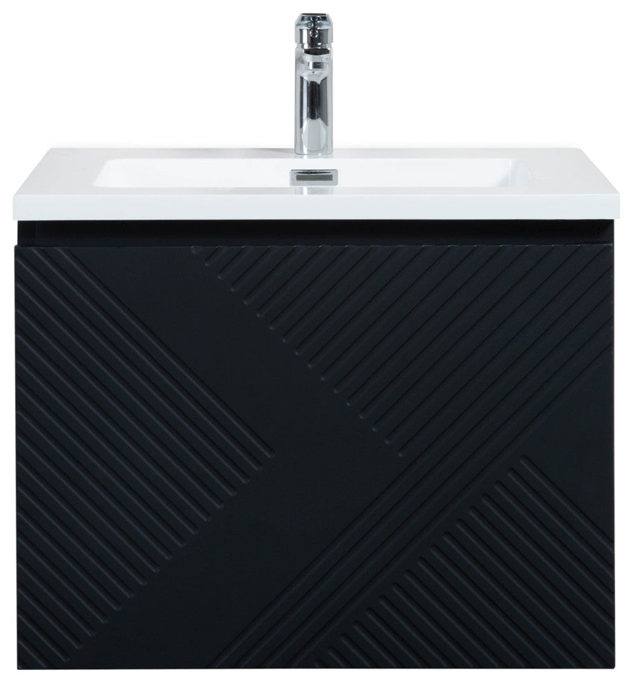 Matte Black Wall Mount Bath Vanity, Integrated Sink, White Sink, 24"