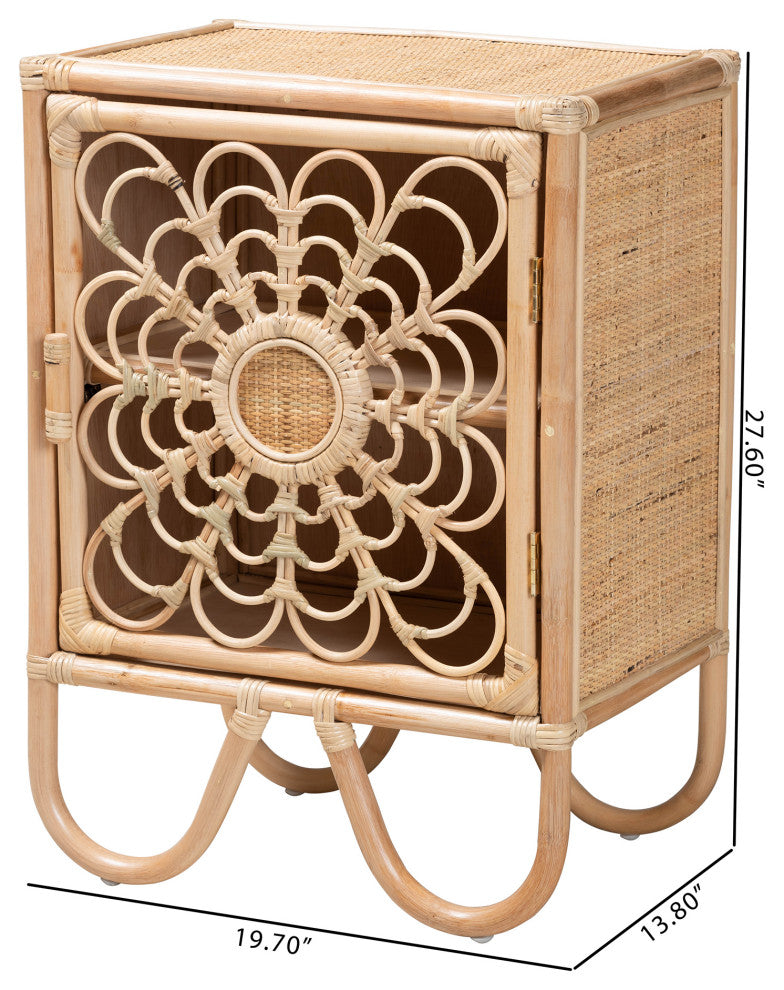 Reinvigorate your bedside with the rustic flair of the lovely Max nightstand. Hand crafted in Indonesia, this Bohemian piece consists entirely of natural rattan. The door is comprised of curled rattan poles for a stunning geometric display with rich curves. The Max will arrive fully assembled and feature two interior shelves to organize bedroom essentials while reserving the tabletop for nightly use. Curved legs create a eye-catching silhouette, making the Max nightstand an efficient and beautiful addition to any arrangement.