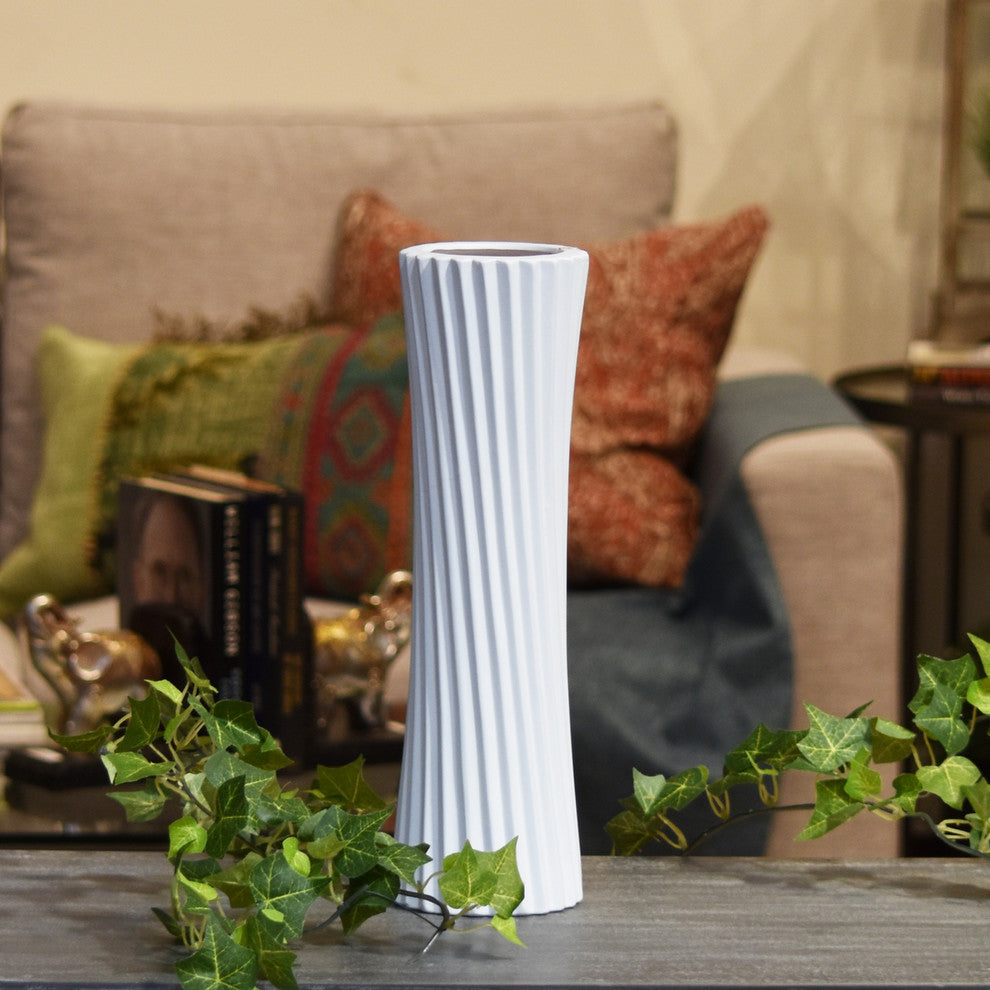 Place the McFayden Ceramic Vase (or two) on your shelf or coffee table for a modern update. With rich white coloring, this piece creates a contemporary display.Round shape with a flared bottomColor: WhiteMaterials: CeramicDimensions: W 4" x D 4" x H 13.25"