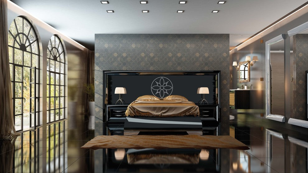 Md Sophie 45 Special Headboard Bedroom Set, Glossy Black, King