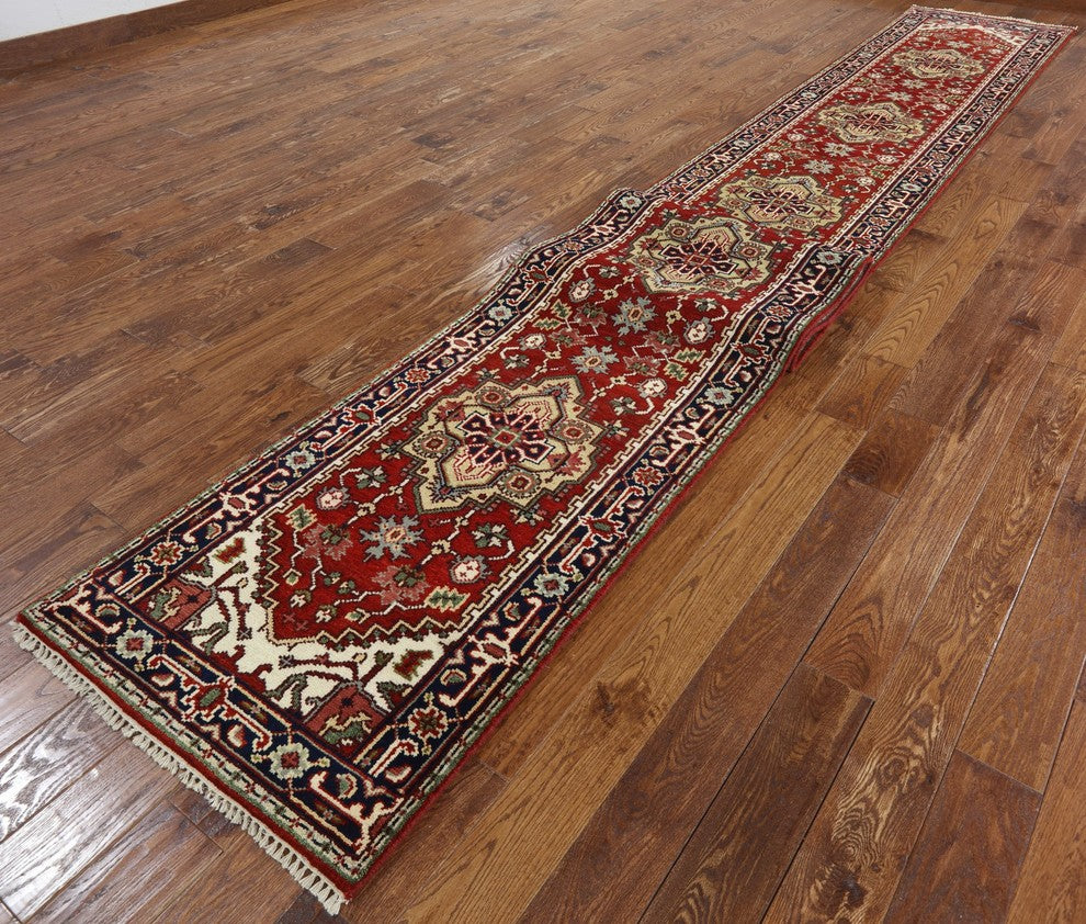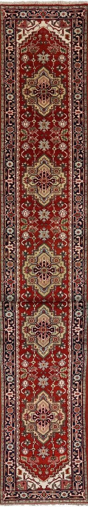 Medallion Motif 3'x20' Red Heriz Serapi Runner Hand Knotted Wool Rug H9264