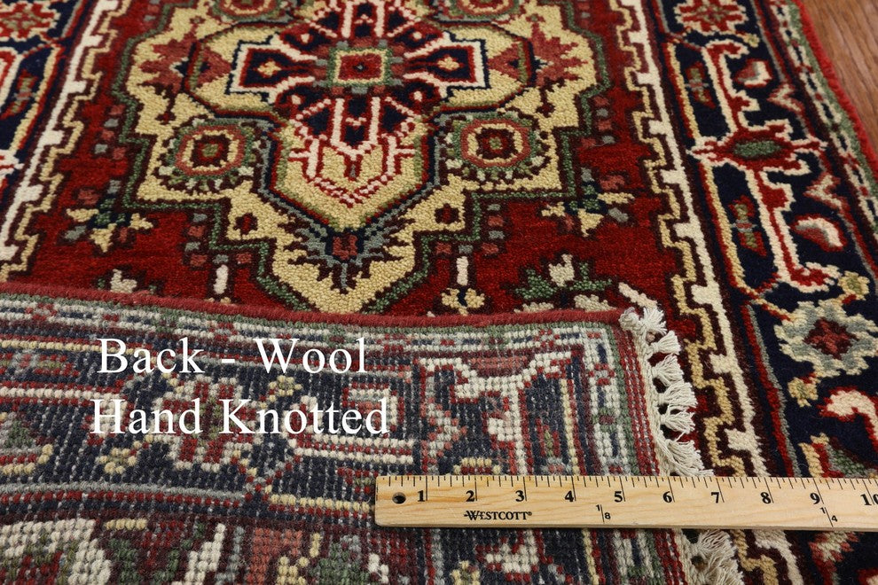 Heriz is situated in the northwestern part of Iran (Persia). Though the term covers Hand knotted rugs of numerous small villages in the area, the most beautiful Rugs were woven in Heriz itself For the last 100 years, the Heriz carpet designs have basically remained the same, with only small variations in color pallets and density of the design. The late 19th Century Rug (so called Serapis) was of fewer details and softer colors and with time designs became denser with added jewel tone color pallets. The revival of the carpet industry in the late 19th Century was based on the demand of the Western markets, with America in particular. Weavers in Heriz hand knotted were asked to make carpets inspired by the Fereghan Sarouks of higher cost for consumers of more limited budgets. Even though Sarouk carpets changed style later on, Heriz weavers stayed with the geometric pattern till now. However, Heriz was also a center of production of some of the best handmade carpets with both geometric and curvilinear floral patterns. A special heirloom wash produces the subtle color variations that give rugs their distinctive antique look.