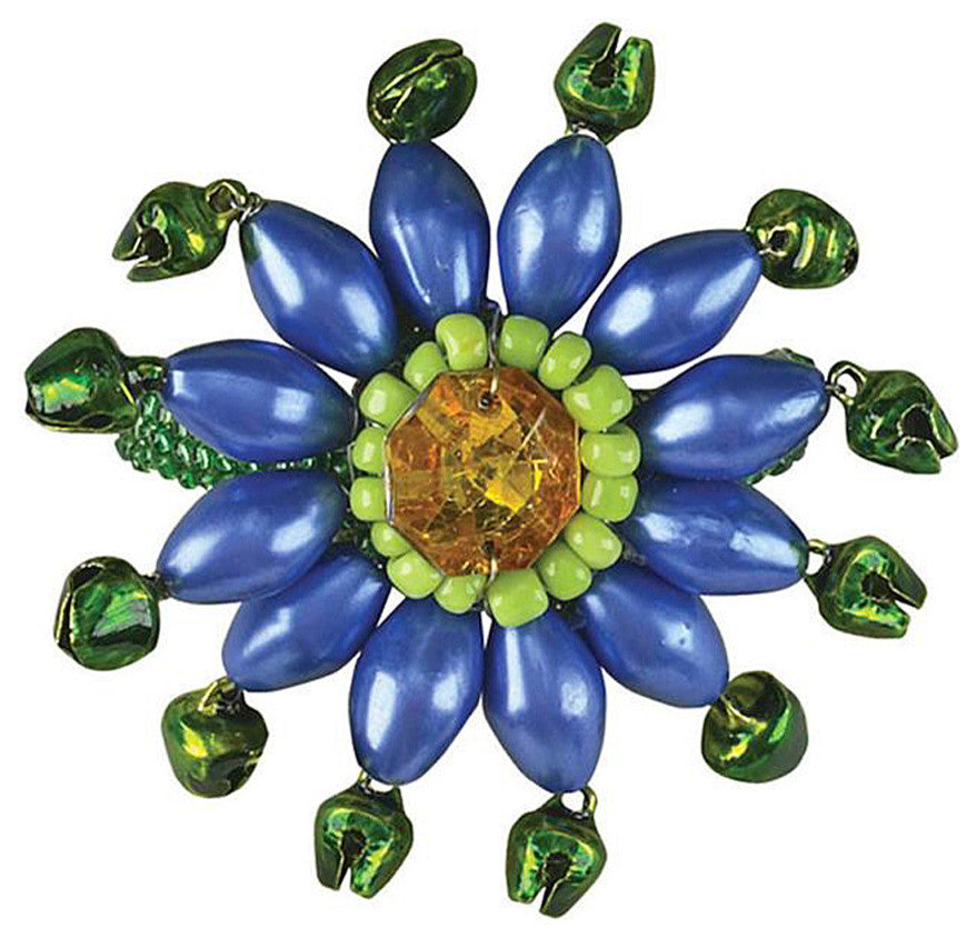 Add a touch of the tropics to your table with a set of Medallion Style Napkin Rings. The tips of the beads are accented with metal beads and the ring that holds the napkins is covered with small sable brown beads. The napkin ring measures 2 1/2" in diameter and the napkin opening is 1 1/2" in diameter. The overall height measures 2" tall. Set of 2.