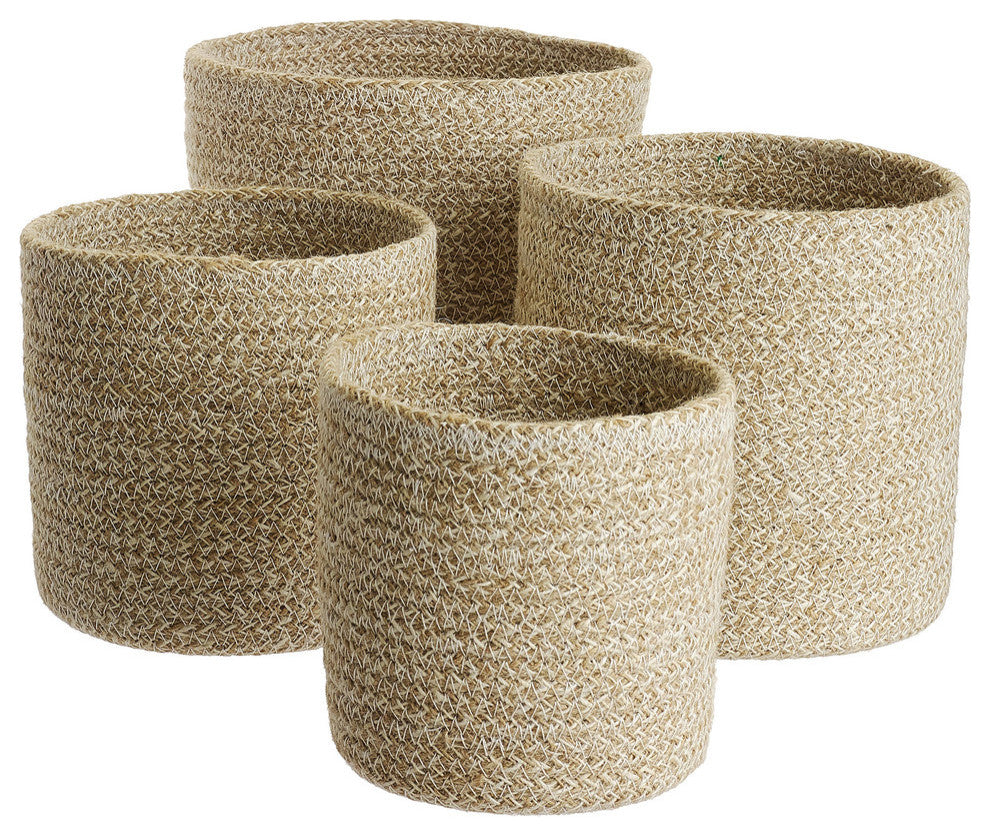 Sometimes a space can feel a little rigid. That''s why we''ve developed these supple containers out of natural woven jute to help you organize while softening your surroundings. Use Melia baskets as cachepots or containers for odds and ends on shelves, tables, desktops, or anywhere else your clutter needs containing. Comes as a nested set of 4 containers sized to hold everything from remotes and chargers to toys and craft supplies.