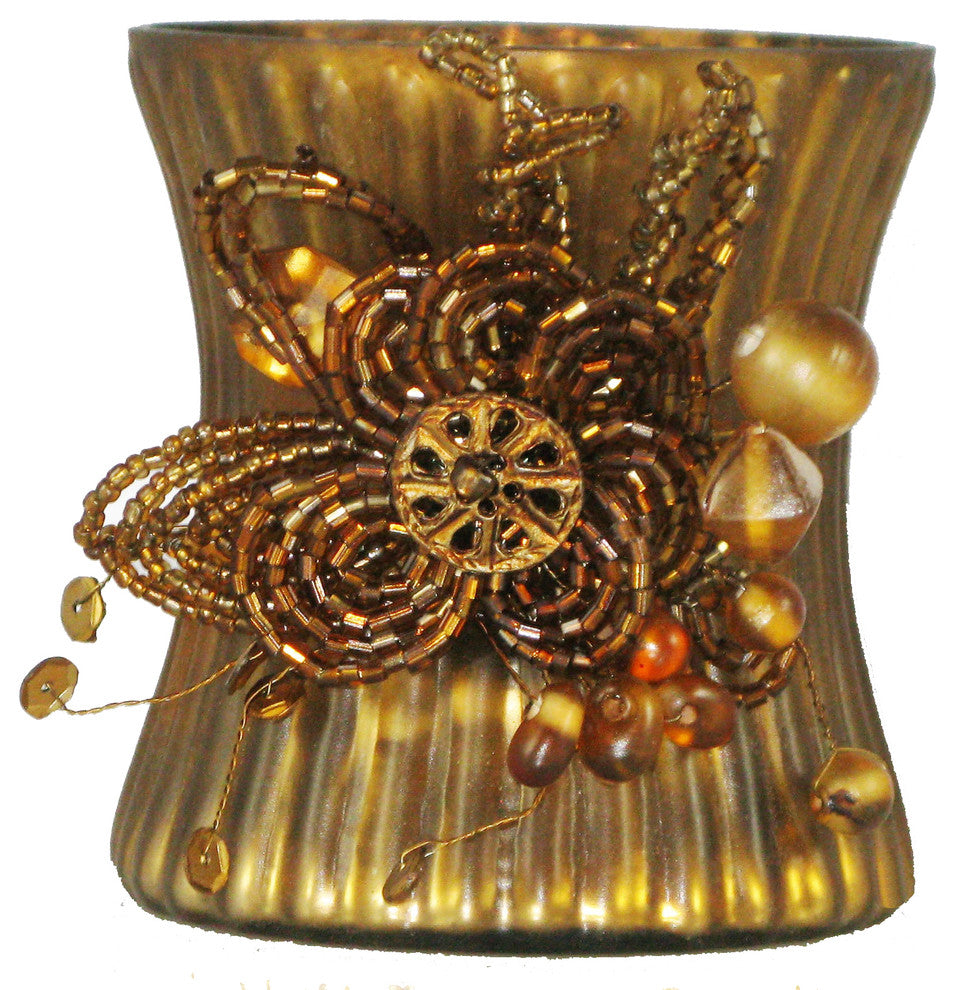 Mercury Glass Beaded Amber Votive Holder