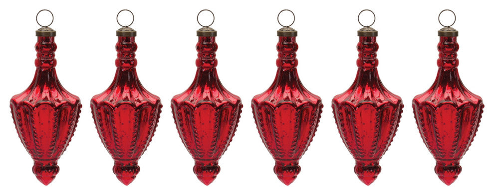 Adorn your Christmas tree and holiday decor with this stunning set of Mercury Glass Finial Drop Ornaments. Featuring 4 pieces, the festive red tones paired with the textured design is the perfect combination to create a memorable display. The quality glass and brass composition and delicate brass ring hanging accent is sure to endure for seasons to come. Whether you''re adding a touch of cheer to your home or gifting to a loved one, these ornaments will definitely bring smiles.
