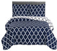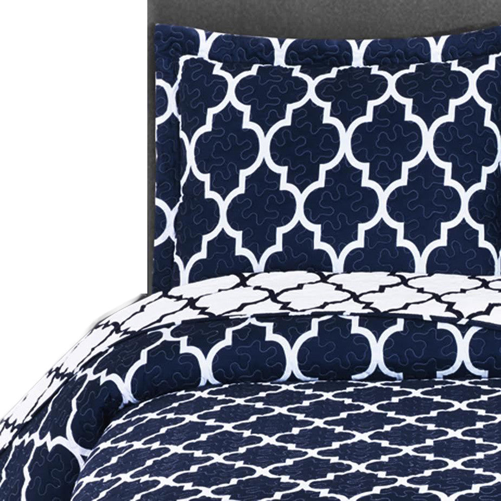 Makeover your bedroom with this beautiful and comfortable Meridian 3-piece quilted coverlet set, featuring a geometric pattern in beautiful bright colors that will bring life into your sleep space. This Meridian Quilt bedding sets comes complete with one coverlet and two pillow shams (one for twin bed size). Furthermore, all sizes available in Navy/White and Gray/White Colors - 100-Percent Microfiber Cover- Geometric Pattern- Filling:50-Percent cotton, 50-Percent Polyester Fill- Wrinkle-Free & Easy Care- Hypoallergenic- Pet-hair Resistant- Lightweight Fill- Oversized Reversible Quilts- Royal Tradition- Machine WashableAvailable Sizes Includes:- Twin/Twin Extra Long Size: One Quilt 68" wide x 90" long & One Sham 20" wide x 26" long.- Full/Queen Size: One Quilt 92" wide x 96" long & two shams 20" wide x 26" long each.- King/Calking Quilt Set: One Quilt 110" wide x 96" long & two shams 20" wide x 36" long each.