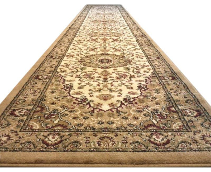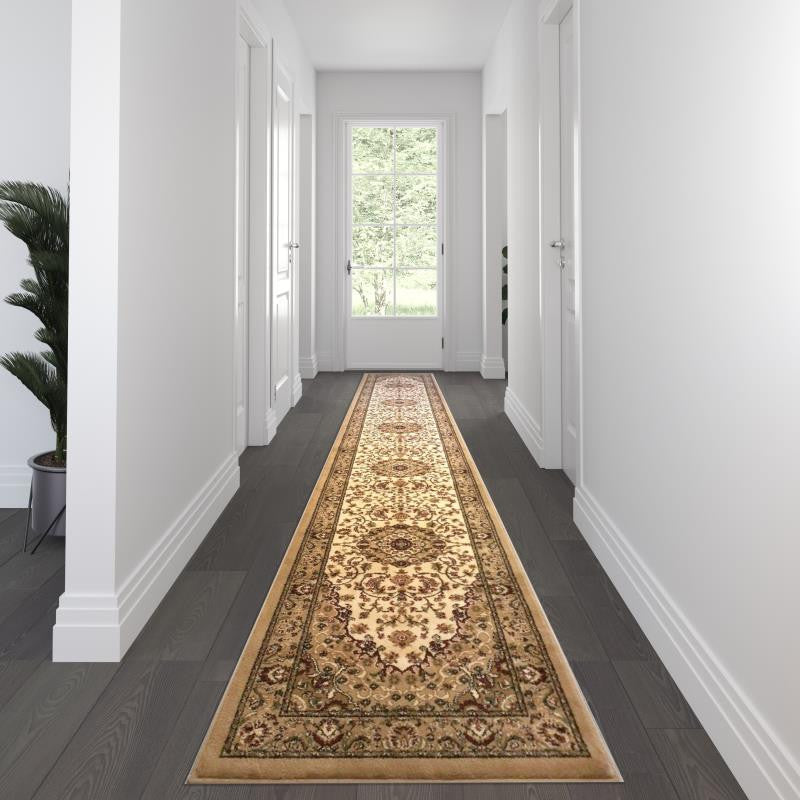 Mersin Collection Persian Style Area Rug - Olefin Rug with Jute Backing, Ivory - 3' X 20'