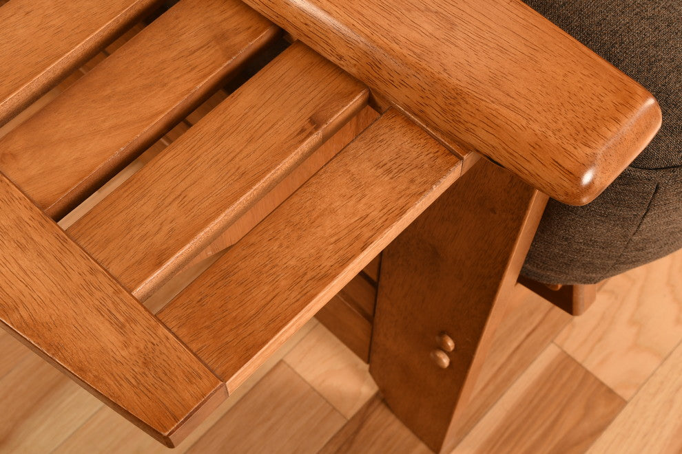 The futon is a classic hardwood frame with tray style arms. This unique and versatile full size futon sofa easily converts to a Bed. This multifunctional piece of furniture can find a home in just about any type of room.Fabric Color: Dark Brown2nd Color: Dark BrownFabric content: Fabric content: 100% PolyesterMattress Specs: 294 Coil Hinged Spring,Cotton,High Density Foam,Hand TuftedFrame Dim/Trays up: 97L x 37D x 33HSolid hardwood constructionConverts to standard full size bedNo tools needed for easy assemblySofa height seatingPlantation grown hardwoodBuilt in TrayOption Description: Viva Sage with DrawersReplenishable: YesWarranty Length: 1 year Limited ManufacturerFrame Dimension: 87L x 37D x 33HSeat Height: 22"Seat Depth: 21"Seat width: 74"