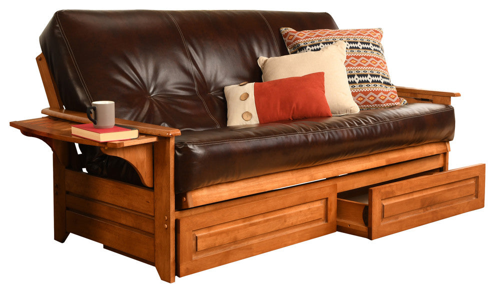Mesa Frame Futon With Barbados Finish, Storage Drawers, Oregon Trail Java