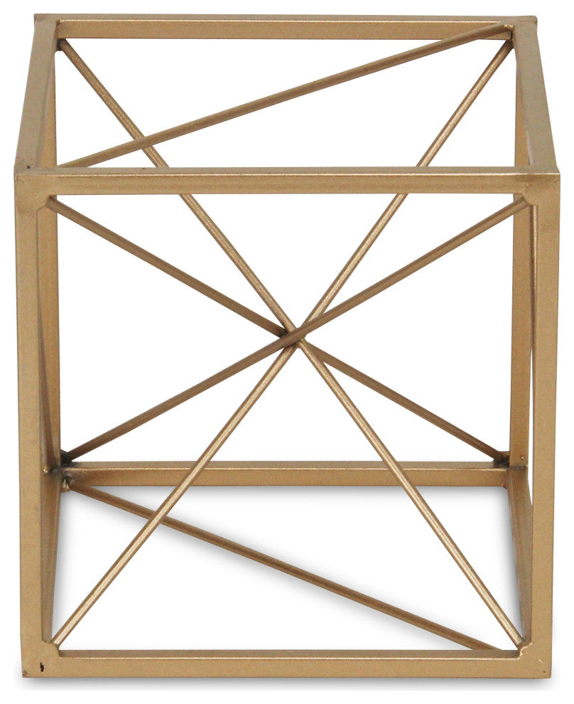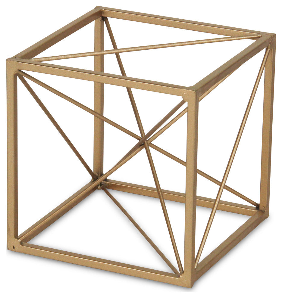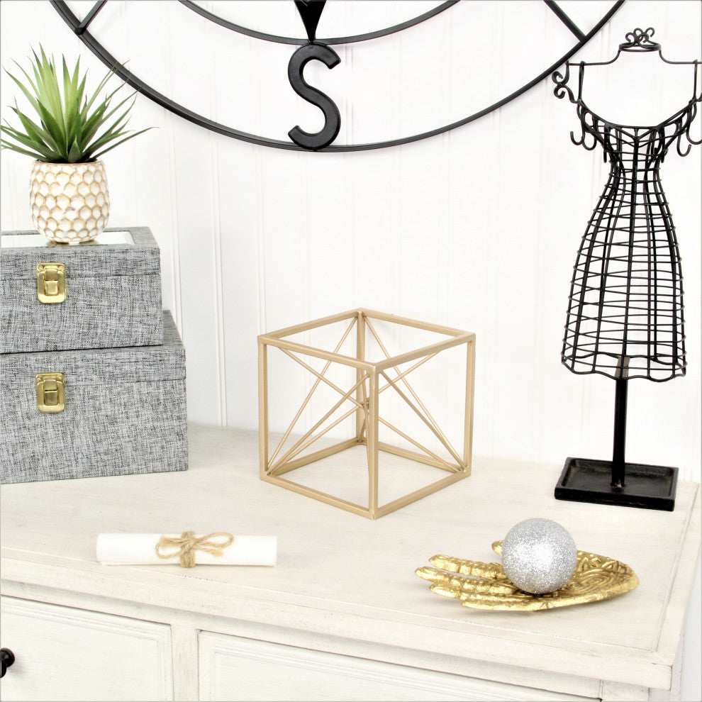 Like a metal cube of yarn, this abstract decor dresses up any bare tables. The hand-welded design attracts light and contrast, while its golden color invites warmth into your space.