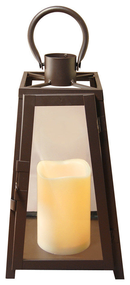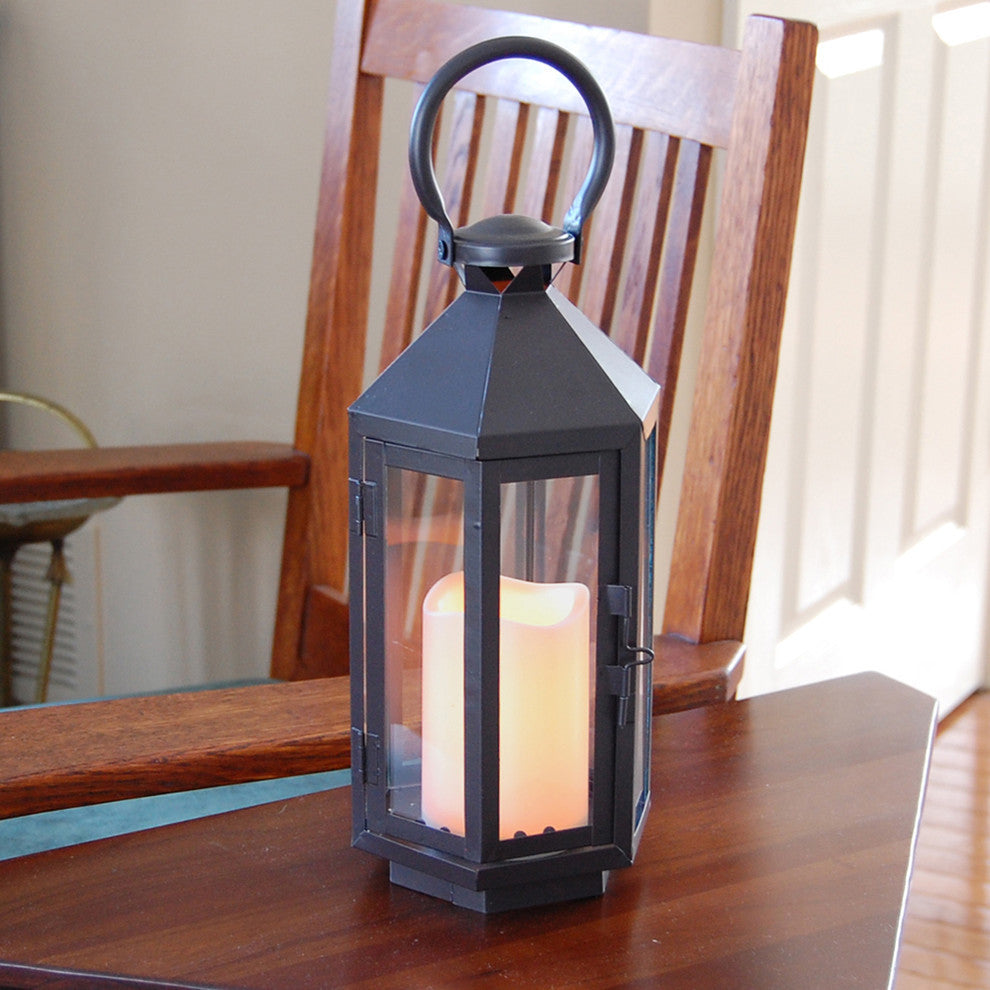 This metal lantern brings a beautiful source of ambient light to your home or special event. With a battery operated LED candle, this lantern is safe to use indoors or outdoors. It is a versatile decor piece perfect for parties, holidays or any occasion. Perfect for pathways, seating areas, centerpieces and much more.