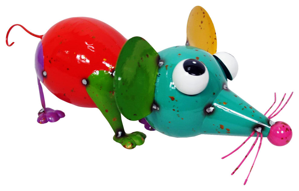 Metal Mouse Garden Statue with Orange Body Outdoor Sculpture Patio Ornament