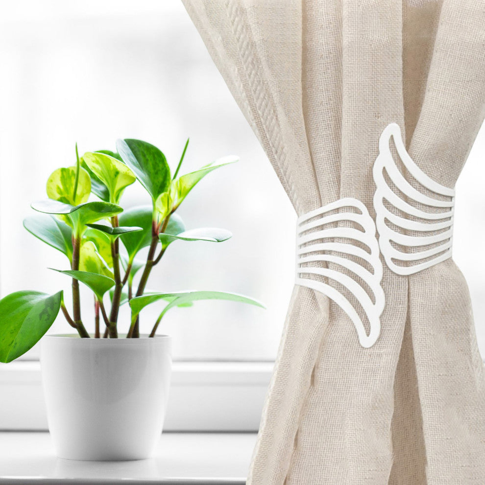 Metal Wings Curtain Tieback "“ Elegant and Durable Design, White, Pack of 1