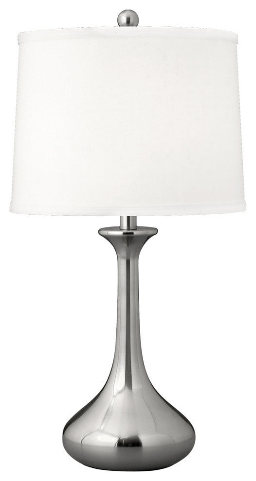 Standard Lamp Specifications for #S700:Product Type: Table LampHeight: 26"Finish: Brushed SteelConstruction: SteelSocket: (1) Aluminum 3-way Med. Base Type A 150W Max socket(s). (Bulb(s) not included)Switching: (1) 3-way turn knob switch(es) located on the socket.Cord: 7.5'' (from base) long clear silver SPT-2 cord set with a 2 prong polarized plug.UL/CUL and/or ETL listed: YesHarp Size: 8 inches (including the saddle)Standard Packing: 2 per carton (shade packed separately).Lamps & Shades per SKU: 1Lamping: (1) Aluminum 3-way Med. Base Type A 150W Max socket(s).Shade Size and Description: White fabric laminated to styrene hardback drum with self fold trim measuring 12" x 14" x 10" w/ .5" drop (Top x Bottom x Slant).Bulb Included: NoMaterial Description: constructed from polished, plated, and lacquered steel.