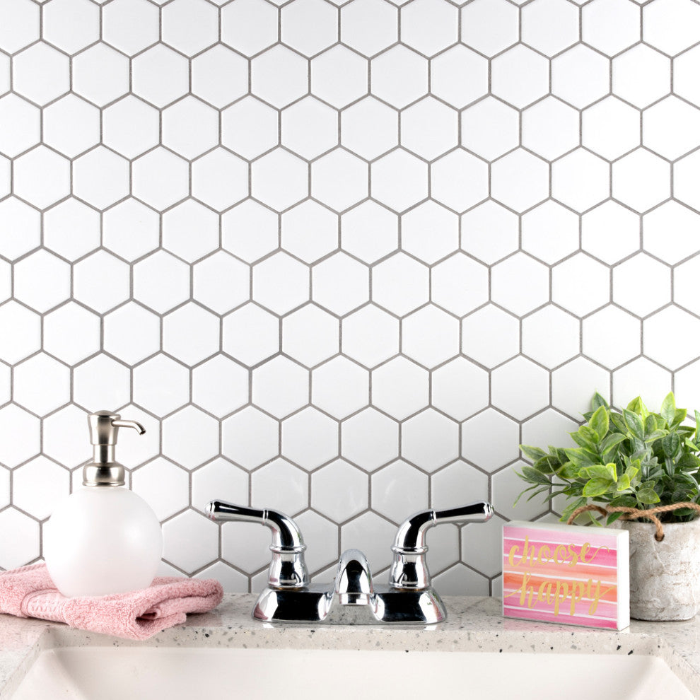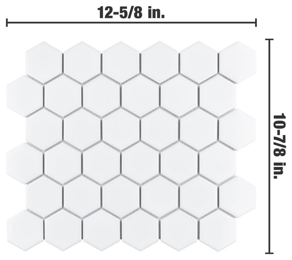Offering a mosaic look, our Metro 2 in. Hex Glossy White Porcelain Floor and Wall Tile features a smooth, glossy finish, providing decorative appeal that adapts to a variety of stylistic contexts. With its impervious features, this white hexagon mosaic is an ideal selection for both indoor and outdoor residential installations, including bathrooms, backsplashes, showers, hallways and fireplace facades. This tile is a perfect choice on its own or paired with other products in the Metro Collection. Tile is the better choice for your space!