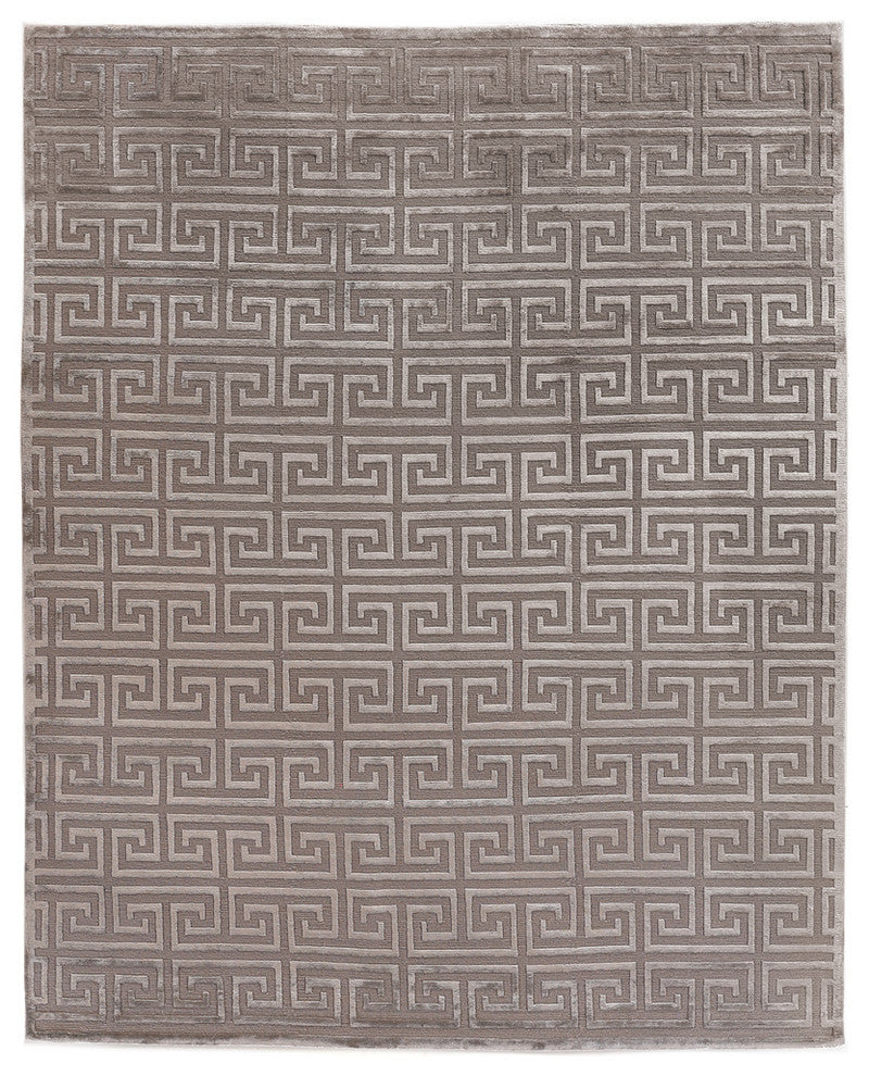 Metro Velvet Hand-Knotted New Zealand Wool and Viscose Taupe Area Rug, 8'x10'