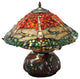The Tiffany Dragonfly re-creates Tiffany Studio''s most beloved designs in all of its splendor A stunning Jadestone Dragonfly flies and dives with glowing Red jeweled eyes and delicate Cream Yellow wings over copperfoiled pieces of Red, Green and Yellow natural Agate stones The shade is created with Meyda Tiffany''s famous copperfoil construction process and complemented with a Mahogany Bronze base The base is highlighted with a matching Dragonfly design on a Blue Iridescent mosaic