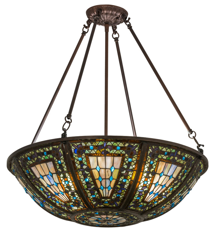 Meyd Tiffan originalthi Fleur-de-lipendaniae legande sigfeaturin stylize three peta Amethy scolore Liliewit Aqua marin colore jewelamon Ambean Perido Rippl Glasan Beig Iridesceng lass handcrafte Brasfram cradle thstaineg lass hadwhicireminisceno Europe acast leancathedra glass Thstaine glass hadi handcraft eutilizinth famou Tiffan copper foicon struct ioproce santh hard warihan finishei Mahogan Bronze Custooptionara vailable Thfixturi Uan Culiste fodaman drlocations