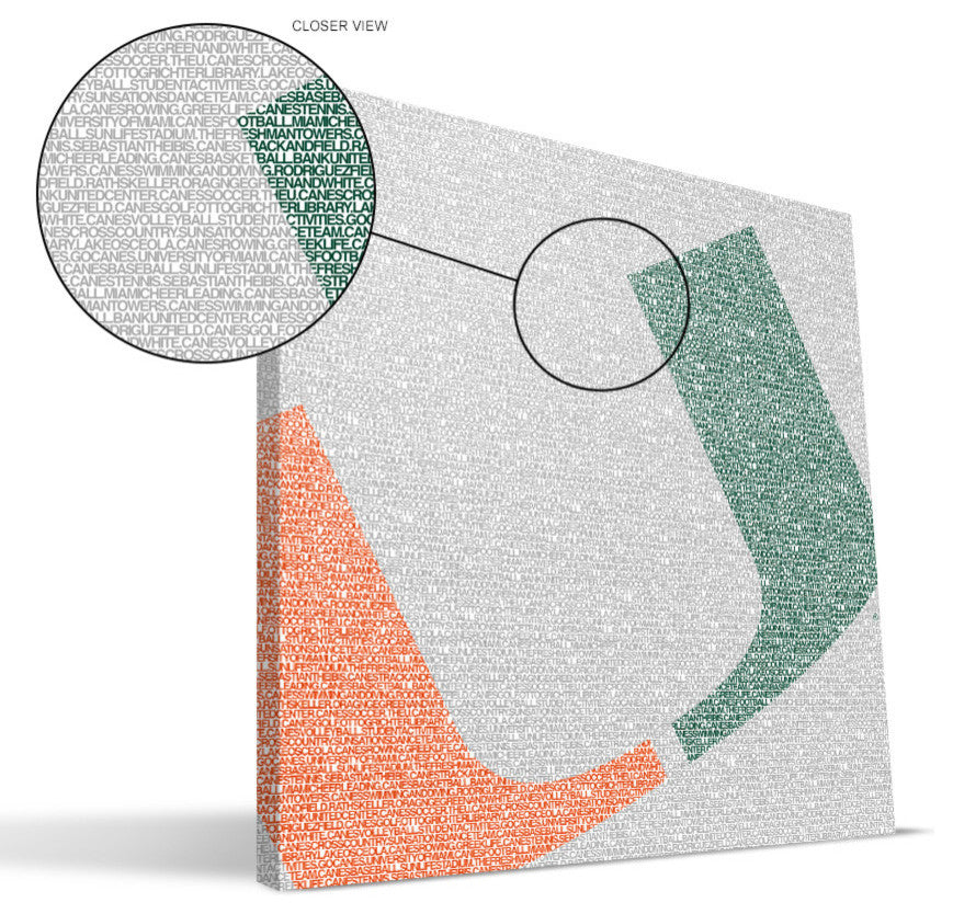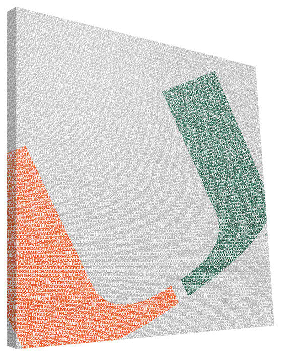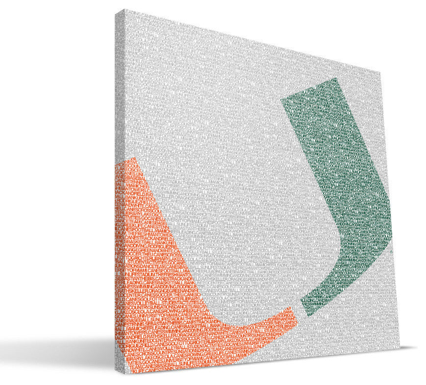 Remember your college days with this canvas print that has specific words and inspiration from your favorite college, University of Miami! This canvas print is 16"x16".