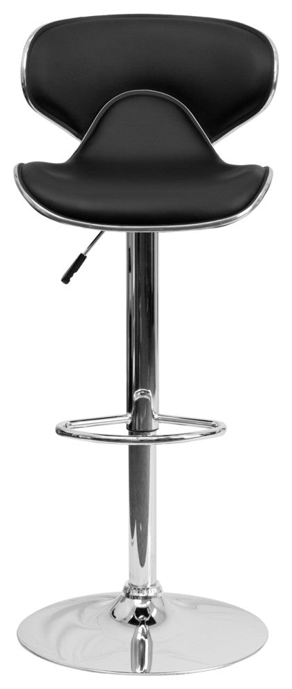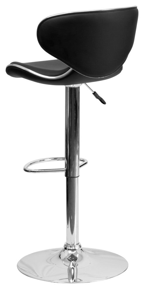 Mid-Back Adjustable Height Barstool With Chrome Base, Black