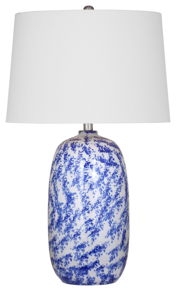 Classic vase-shaped base featuring a vibrant blue and white pattern reminiscent of antique ceramics