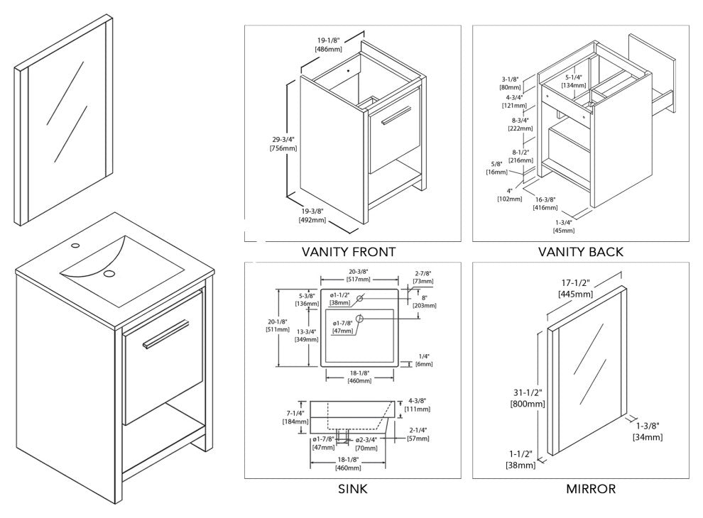 INCLUDED: Vanity, Topmount Sink, Mirror.