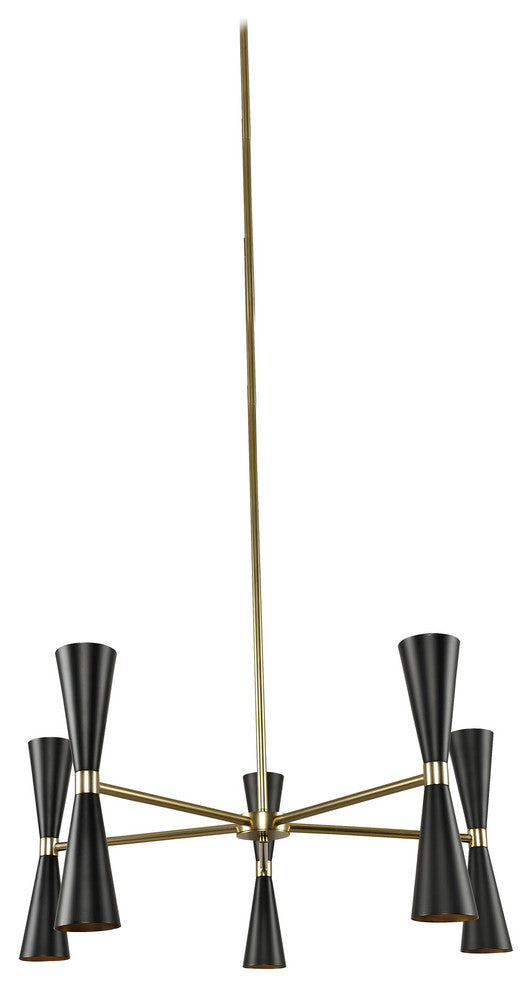 Milo 5 Arm ChandelierStyle: MidcenturyRated: DryPower: HardwireLamping: 10 light(s). 3W LEDBulb(s) included.Finish: Black And Vintage BrassTrendy Mid-Century inspired design with dual LED lamping for maximum efficiency. The Milo Collection features a variety of configurations to fit every space from sconce and entry to dining. Introduced in June of 2016 in a sleek Matte Black with Vintage Brass accents Kalco has added a Warm White finish also featuring vintage brass accents.