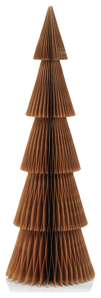 Paper comes full circle in this simply elegant forest of conifers. These accordion paper trees are handmade by skilled Indian artisans that give glamour to your Christmas decor. Each piece folds flat and expands to create perfect tree-shaped beauties that can stand on their own for a wintery touch of nature on any tabletop, mantel, or shelf. The best part is that they store flat, unlike typical trees.