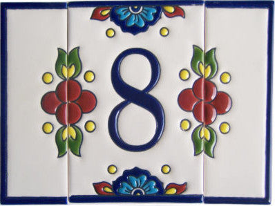This Talavera tile house number number has colorful flower decorations and a cobalt blue frame around it. This is a core characteristic of Mexican Talavera; every single piece of this art is very colorful. The number itself is in dark cobalt blue and the background is Mexican white. It does not have any drillings or holes to hang it. It is supposed to be glued to the wall or to a frame. If you want to delight somebody special with an unique handcrafted gift, this is what you are looking for! Or take it to your house front for a Spanish touch to your home decor.Most likely you would like to complement this tile with the endings tile as shown in the last picture.Hand-hammered and mold-cut to perfectionHandcrafted by Mexico''s Finest ArtisansWe include 1" long brown screws in all of our hammered copper switch plates