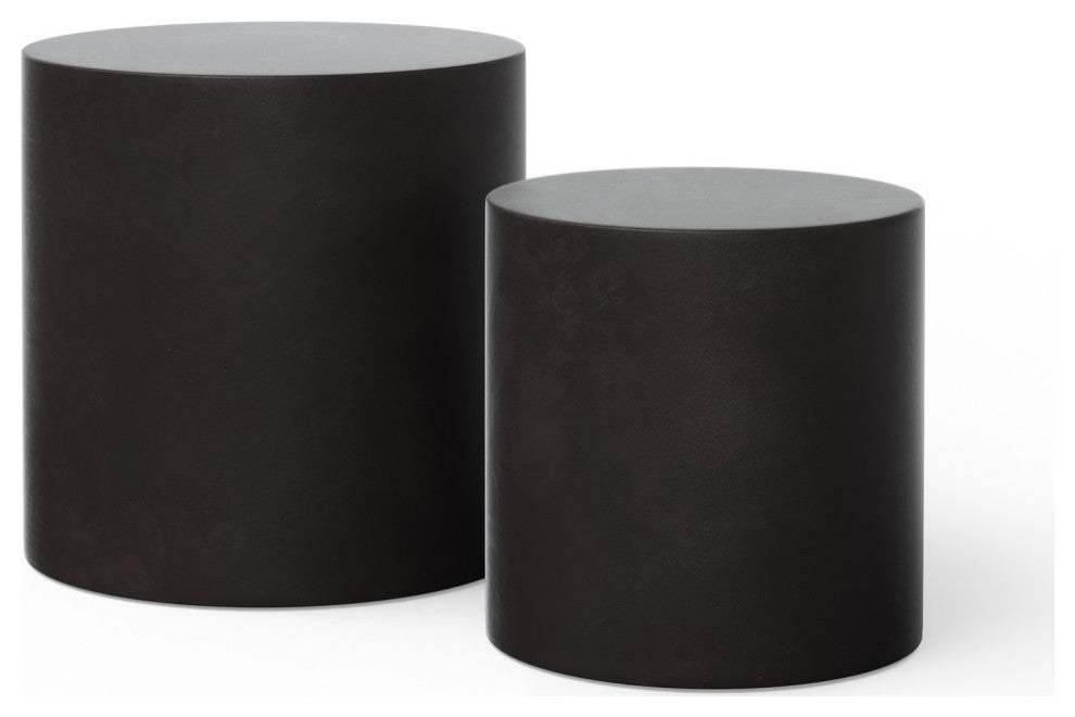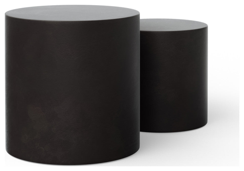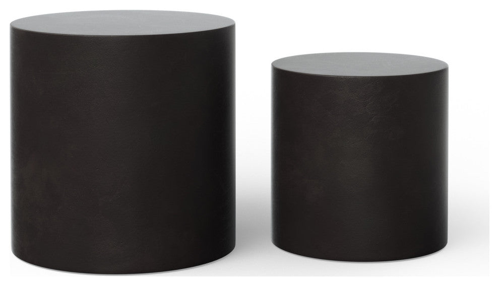 A set of two versatile cylindric pedestals, one tall, one shorter. This matching pair can function as display pedestals, end tables or extra seating.