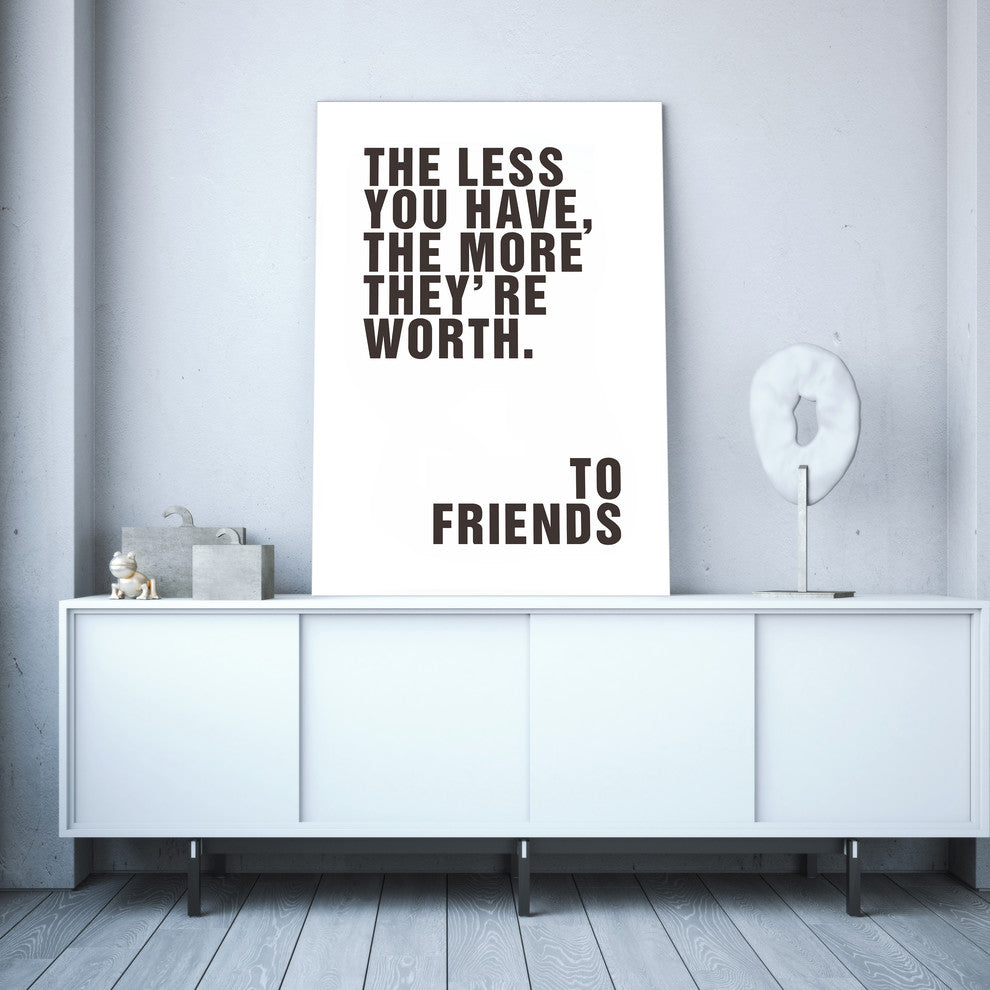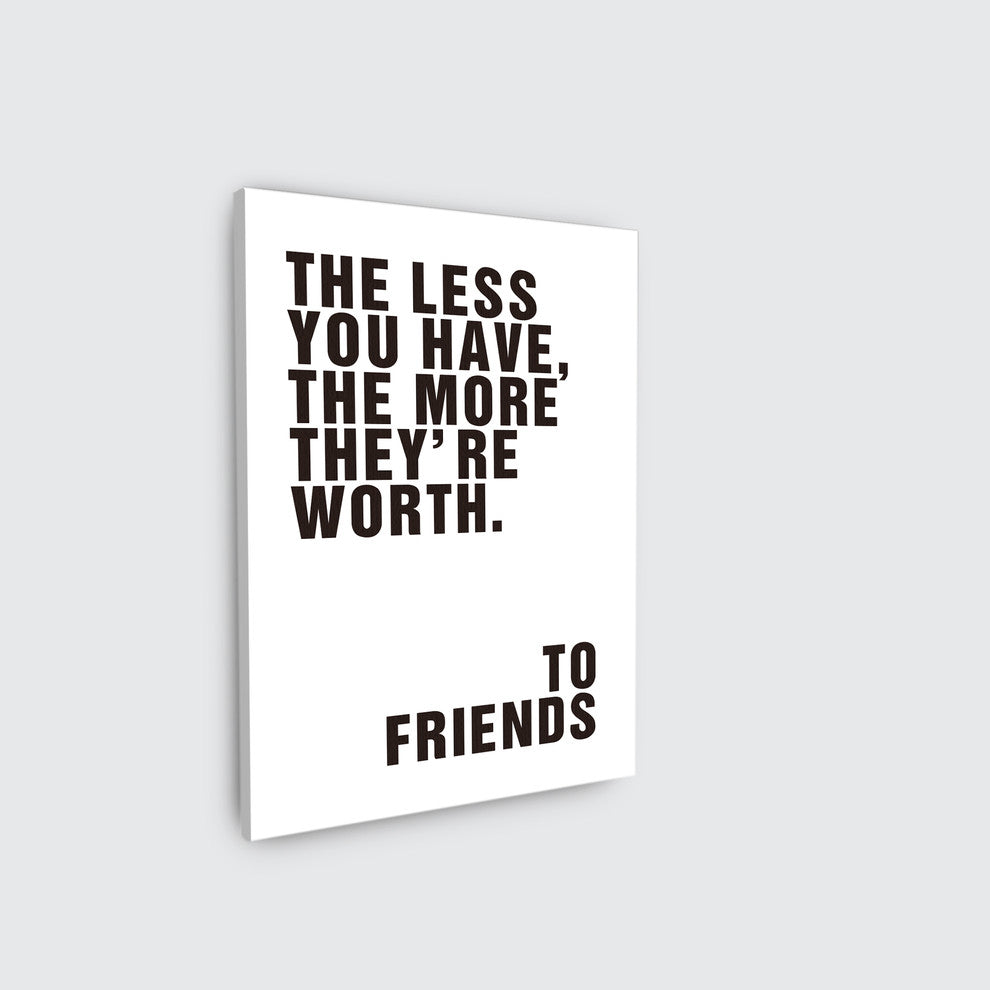A simple message about friendship. While you could certainly place this interesting typographic piece in your own home, it would also make an excellent gift to someone close to you as a testament to your friendship. This simple piece would work well in any room, with any color scheme and will easily complement any existing artwork.