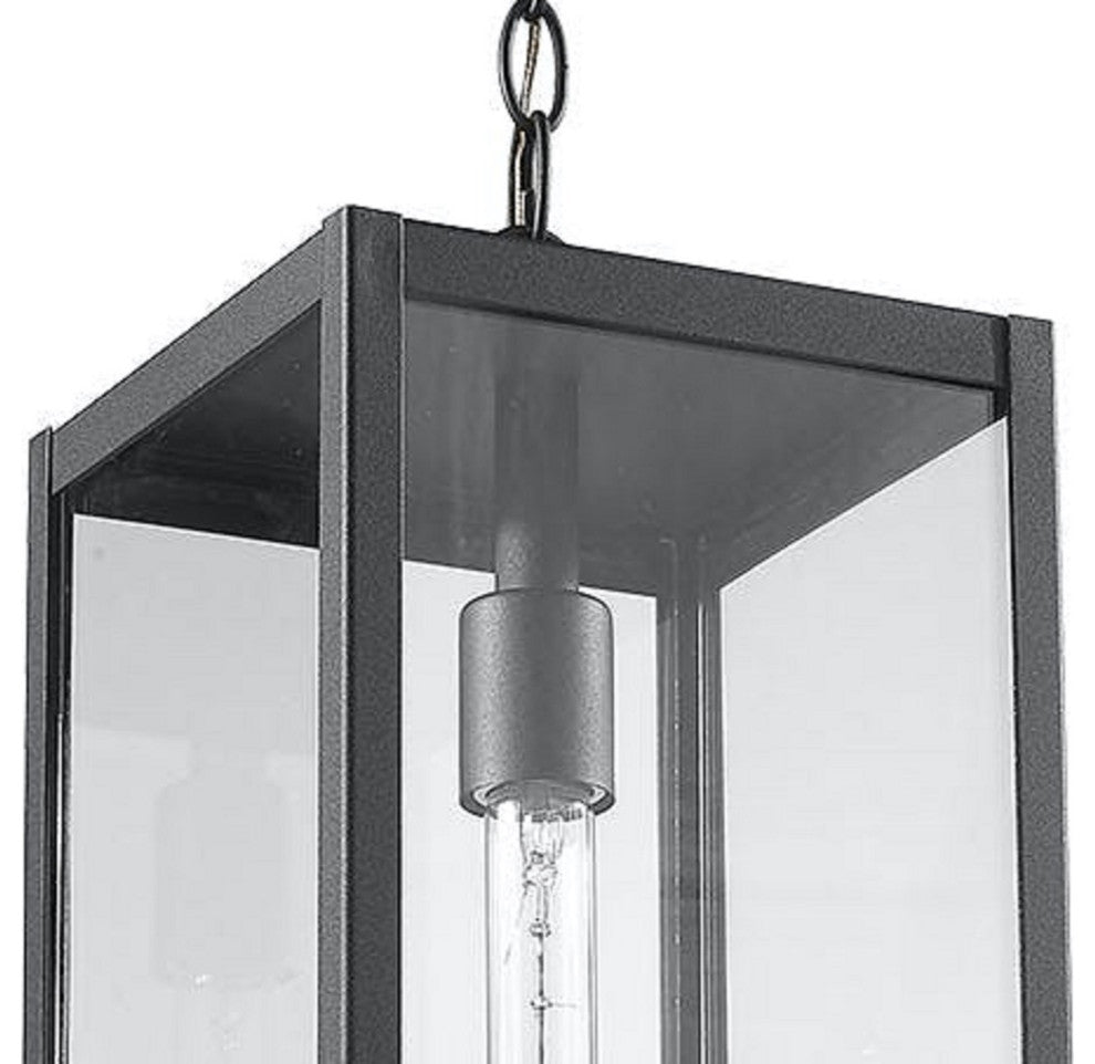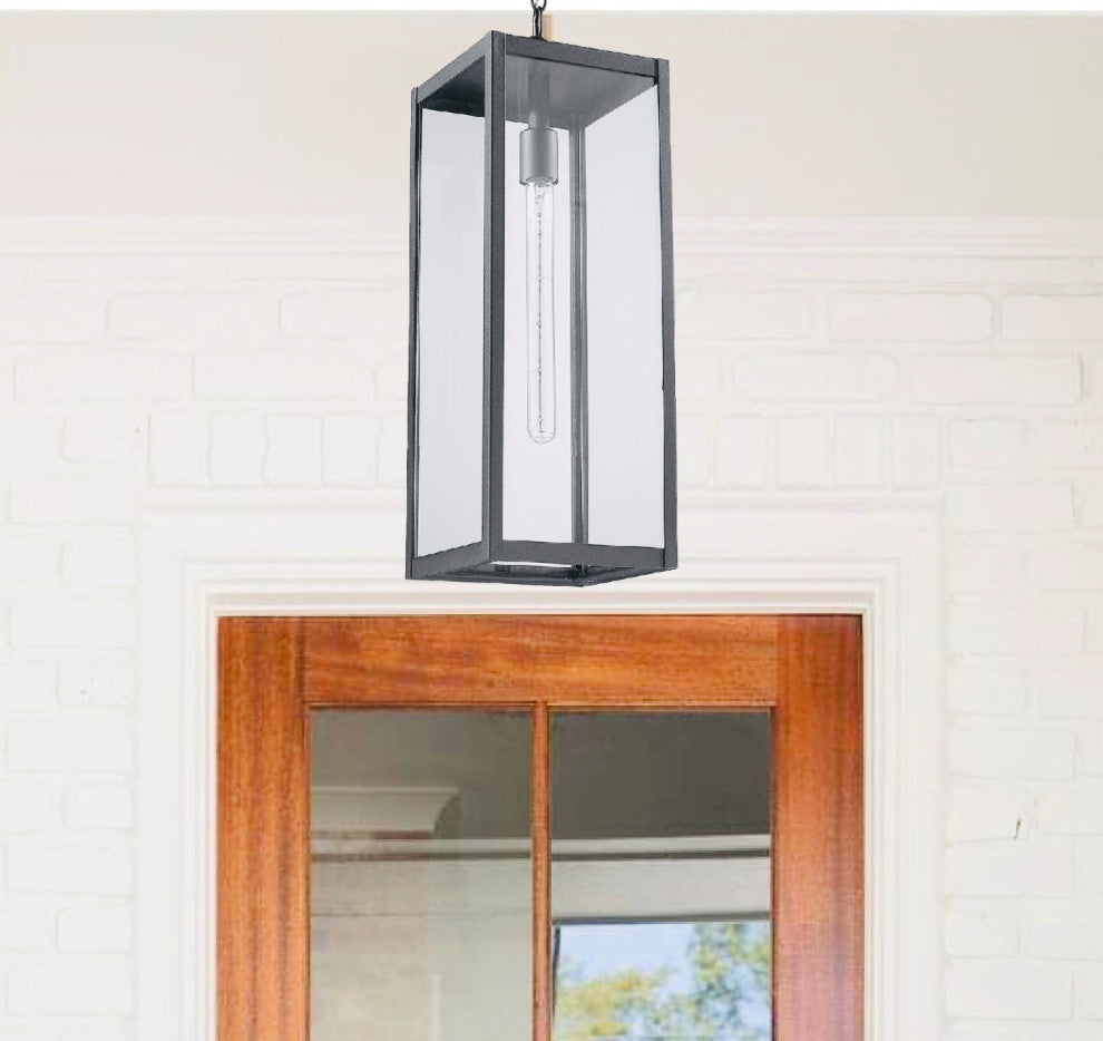 Modern 1 Light outdoor aluminum hanging porch pendant in black